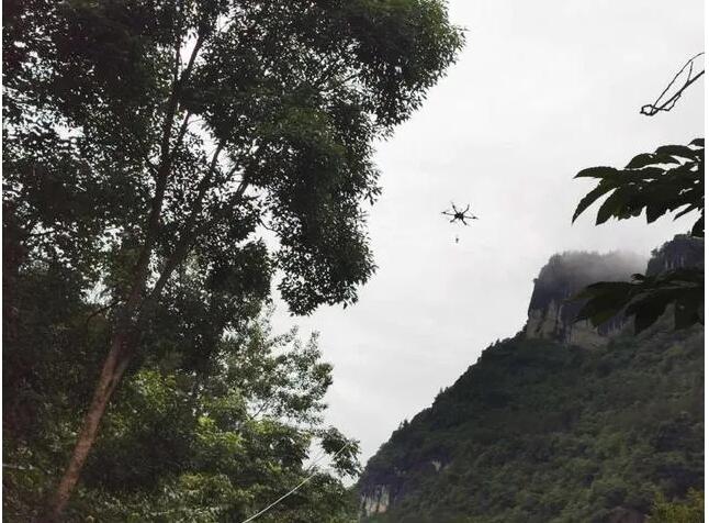 由于光纜恢復(fù)區(qū)域地勢(shì)險(xiǎn)峻,搶修難度大,搶修人員結(jié)合現(xiàn)場(chǎng)實(shí)際情況后決定采用無(wú)人機(jī)牽引技術(shù)布放光纜,這樣省時(shí)、省力又安全!