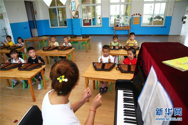 7月22日,學生在石嘴山市大武口區(qū)青少年學生校外活動中心音樂教室內學習鐘琴。新華社記者 賈浩成 攝