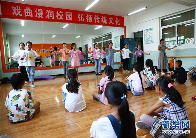 7月22日,學生在石嘴山市大武口區(qū)青少年學生校外活動中心教室內學習秦腔。新華社記者 賈浩成 攝