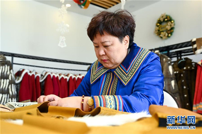 這是2019年12月16日拍攝的位于內(nèi)蒙古自治區(qū)呼倫貝爾市鄂溫克族自治旗民族文化產(chǎn)業(yè)創(chuàng)業(yè)園的太陽姑娘工作室。 新華社記者 貝赫 攝