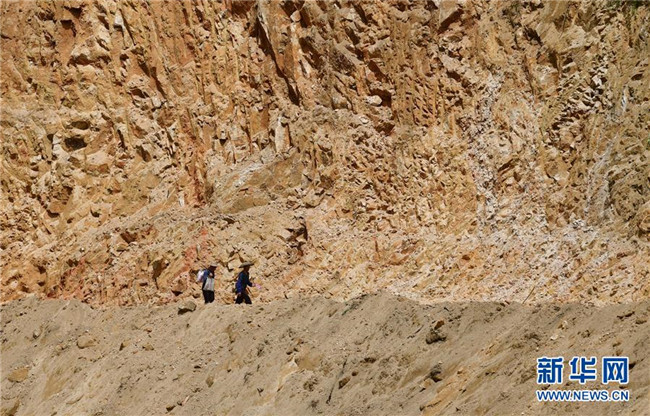 在烏英苗寨,70歲的老黨員梁安合(左)給正在產業(yè)路施工現(xiàn)場的村民送飯(7月30日攝)。 新華社記者 黃孝邦 攝