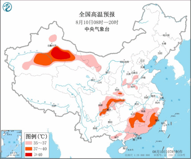 四川盆地到江南一帶仍是高溫的集中區(qū)域