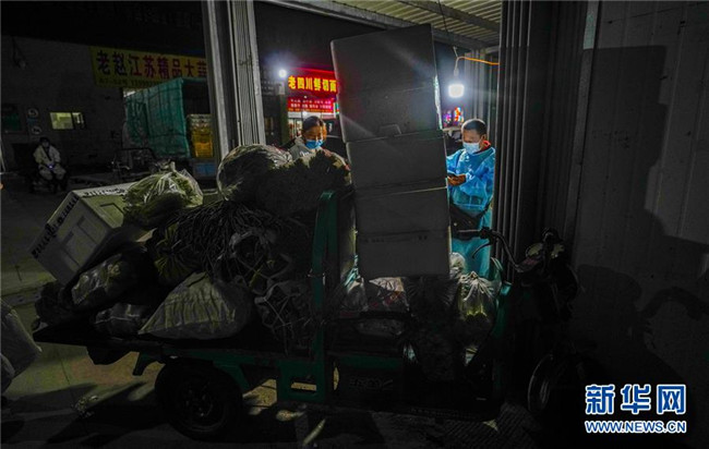 凌晨的新疆九鼎農(nóng)產(chǎn)品批發(fā)交易市場異常忙碌。各式蔬菜在這里匯集,大批菜商搶抓時間采購,他們采用“螞蟻搬家”的方式要將蔬菜趕在9點鐘之前放在直銷點的貨柜上,方便居民選購。陳金奇就是其中之一。 陳金奇負責(zé)的烏魯木齊市沙依巴克區(qū)揚子江街道青松苑社區(qū)蔬菜直銷點輻射三個小區(qū)和一家醫(yī)院。“從這次烏魯木齊發(fā)生疫情以來,我們一直沒有關(guān)門,開足馬力滿足周邊居民的生活需求。”陳金奇說。 凌晨四點是陳金奇一天忙碌的開始。這一刻,他開著面包車驅(qū)車20分鐘前往烏魯木齊最大的一級農(nóng)副產(chǎn)品批發(fā)交易市場——新疆九鼎農(nóng)產(chǎn)品批發(fā)交易市場采購。 經(jīng)過嚴格的防疫處理后,陳金奇進入市場。為提高效率,他放下面包車換駕電動三輪車穿行在這座龐大的市場里。“黃瓜多少錢?西紅柿多少錢?小白菜多少錢……”在新鮮、價格和速度中,陳金奇總能找到最好的結(jié)合點。 經(jīng)歷了兩個半小時,總重超過一噸的新鮮蔬菜分四批采購?fù)瓿裳b入面包車里。“現(xiàn)在市場里各類蔬菜是比較豐富的,山東的生姜、五家渠的芹菜、河南的蒜苔等都能順利買到。”陳金奇介紹,現(xiàn)在最重要的是快速將這些鮮菜送到居民手中。 忙碌了近三個小時,這座城市的天際線慢慢顯露出來。陳金奇在回程的汽車上,黎明時分的金色陽光映照著他黝黑的臉龐。“做好自己的事情就足夠了,我就是要盡全力讓居民吃上新鮮蔬菜。” 一年只有年三十和初一才能休息的陳金奇知道,現(xiàn)在這座城市比任何時候都需要他。