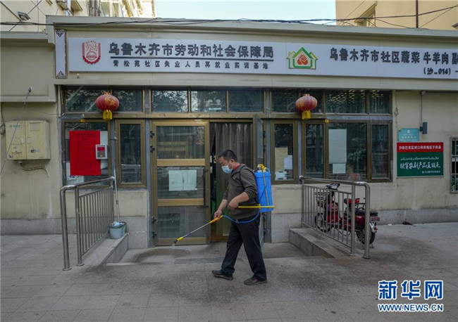 在直銷點正式開門前,陳金奇認真做好消殺工作(8月8日攝)。新華社記者 趙戈 攝