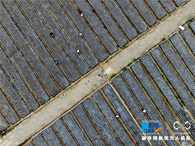 甘肅省宕昌縣好梯鄉(xiāng)地處林緣地帶,氣候溫暖潮濕,非常適宜菌類生長。在好梯鄉(xiāng)麻子溝扶貧產(chǎn)業(yè)園中黑木耳長勢喜人,一排排整齊排列的菌棒構成一幅美麗畫卷。目前,第一批耕地種植黑木耳6萬袋,年產(chǎn)黑木耳3噸,第二批擬在今年9月份新建鋼架大棚24個,吊袋種植黑木耳21萬袋,年產(chǎn)黑木耳10.5萬噸。新華網(wǎng)發(fā)(劉輝 攝)