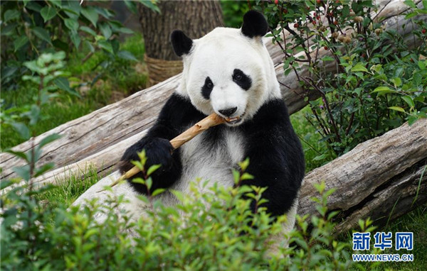 8月16日,大熊貓“雙欣”在西寧熊貓館內(nèi)吃竹子。青海省西寧熊貓館的四只大熊貓已經(jīng)在西寧生活了一年多,在工作人員的悉心照顧下,已經(jīng)適應(yīng)了青藏高原的氣候,身體各項(xiàng)指標(biāo)正常。新華社記者耿輝凰攝
