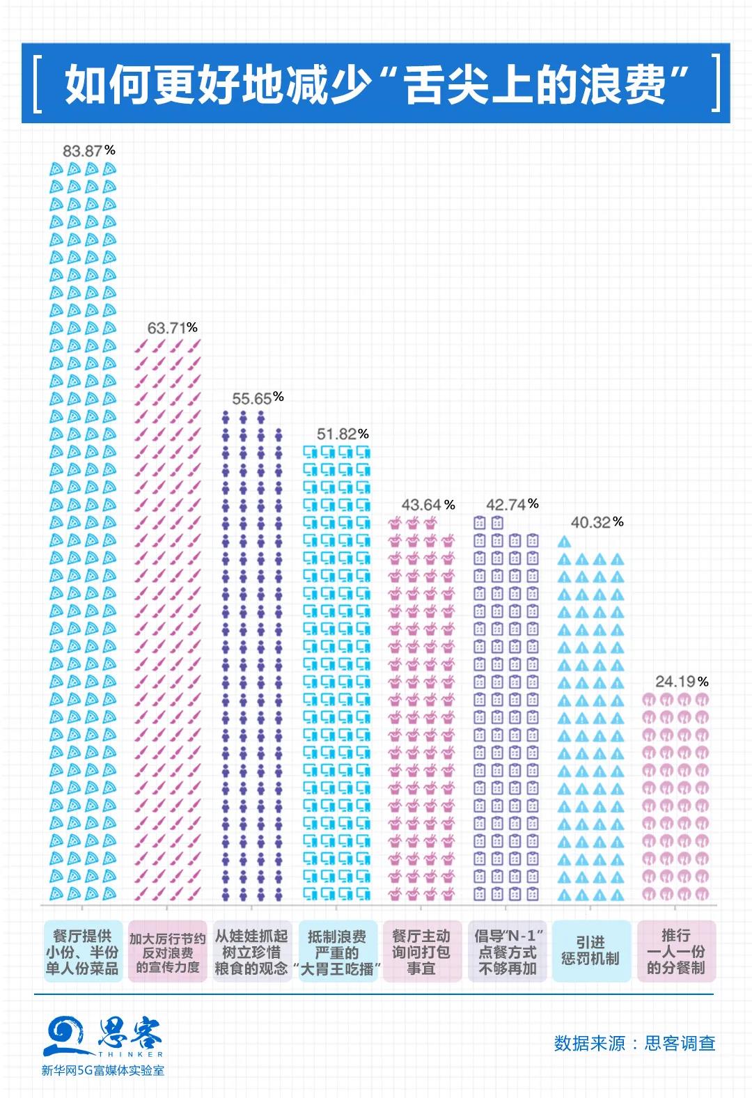 在這些治理浪費(fèi)現(xiàn)象的措施中,餐廳提供小份、半份、單人份的菜品得到了83.87%的受訪者的歡迎。這項(xiàng)措施也在不少餐飲企業(yè)、餐廳食堂等得到落實(shí),在某外賣平臺上,已有超60萬商戶上線小份餐。有網(wǎng)民說,小份菜不僅可以讓我多吃幾道菜,豐富我的餐桌,還能控制點(diǎn)餐的量,避免浪費(fèi)。