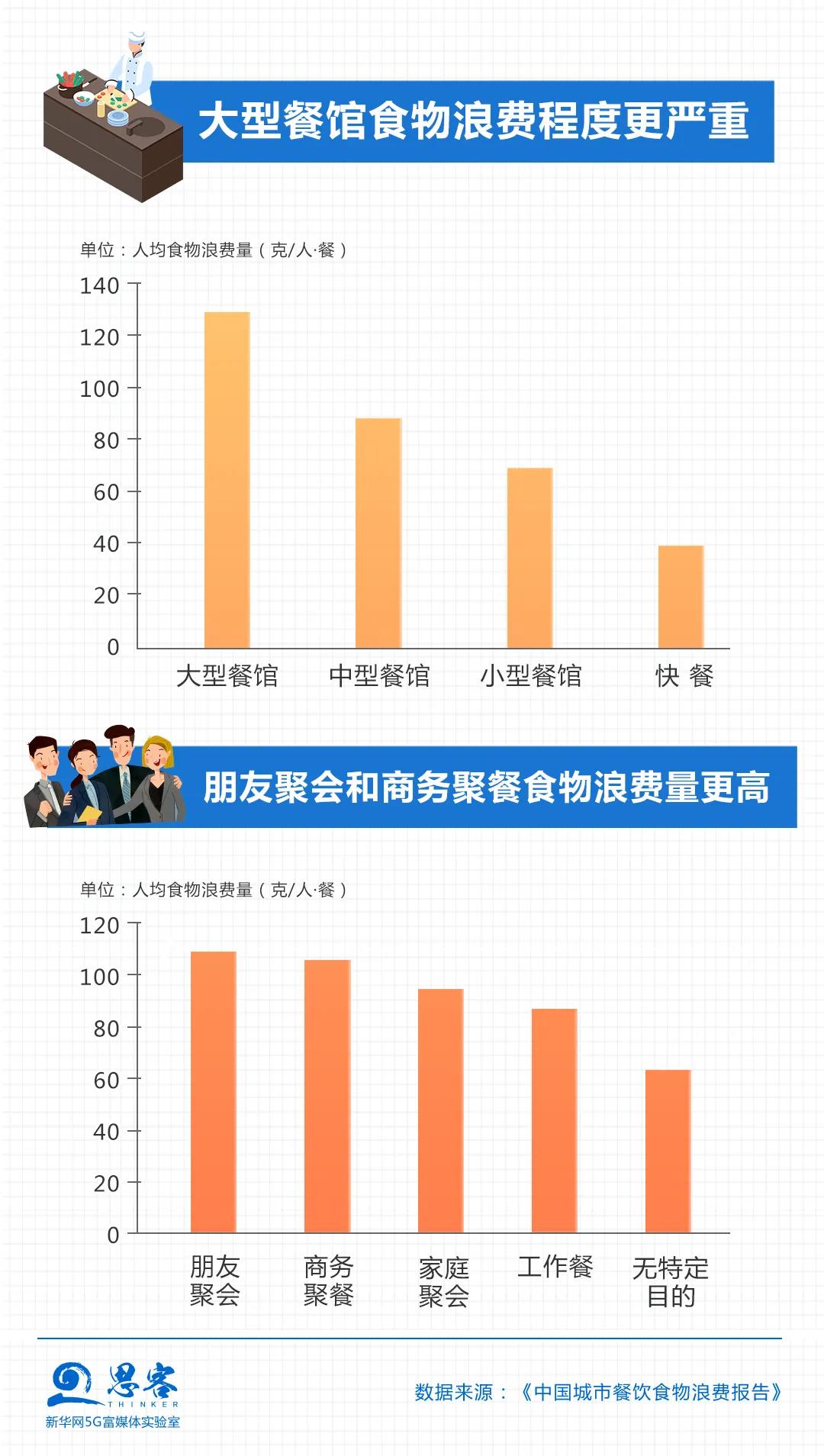 大型餐館等是餐飲食物浪費(fèi)的“重災(zāi)區(qū)”。調(diào)研顯示,大型餐館的人均浪費(fèi)量最高,為每餐每人132克,是快餐人均浪費(fèi)量(每餐每人38克)的近3.5倍。