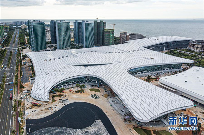 這是8月25日拍攝的位于??诘暮D蠂?guó)際會(huì)展中心二期項(xiàng)目(無(wú)人機(jī)拍攝)。新華社記者 蒲曉旭 攝