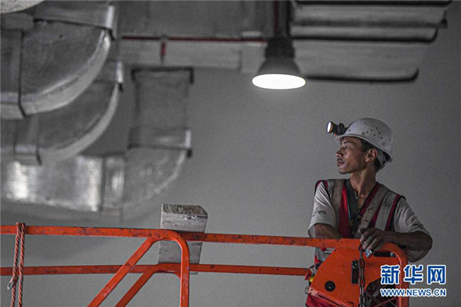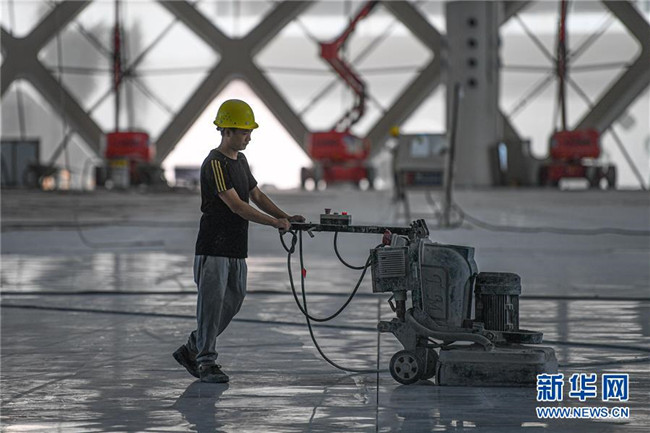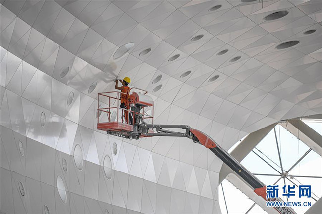 8月25日,工人在位于??诘暮D蠂?guó)際會(huì)展中心二期項(xiàng)目施工。新華社記者 蒲曉旭 攝