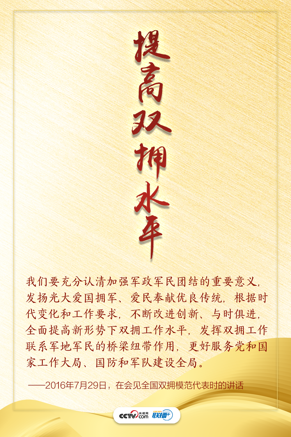 “難得舉城作一慶,愛我人民愛我軍。”軍愛民,民擁軍,最偉大的力量是同心合力。央視網(wǎng)《聯(lián)播+》為您梳理總書記講話,一起感受“軍地合力,軍民同心”匯聚起的磅礴力量。