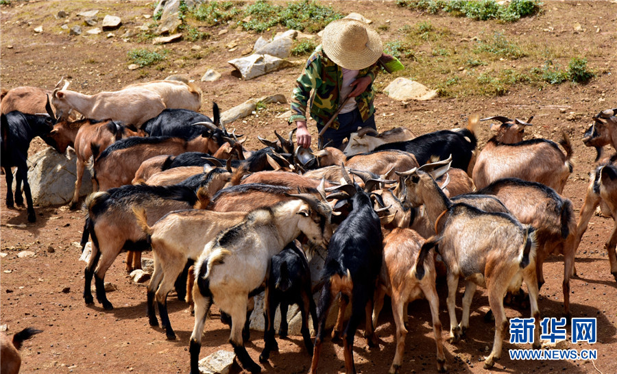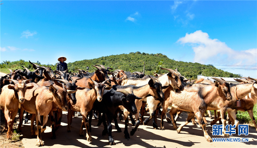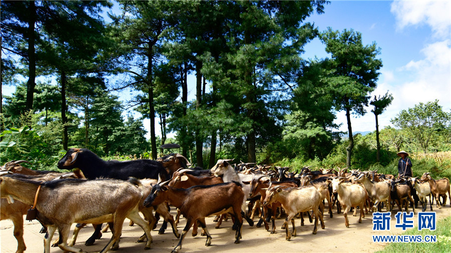 在云南省彌勒市東山鎮(zhèn)舍母村委會小橫山村,當?shù)乩蒙鷳B(tài)草場優(yōu)勢大力發(fā)展生態(tài)羊養(yǎng)殖,戶均養(yǎng)殖100多只,成為村民們的致富新手段。(10月11日攝)。新華網(wǎng)發(fā)(普佳勇 攝)