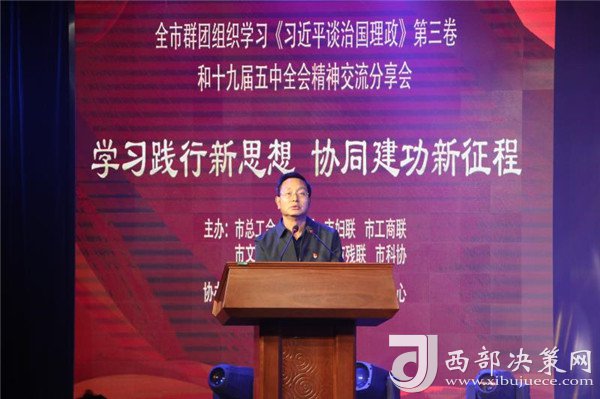 西部決策網(wǎng)訊 為深入貫徹習(xí)近平新時(shí)代中國特色社會(huì)主義思想,學(xué)習(xí)宣傳貫徹《習(xí)近平談治國理政》第三卷、黨的十九屆五中全會(huì)精神,加快群團(tuán)協(xié)同化建設(shè)進(jìn)程,11月5日,西寧市總工會(huì)牽頭召開市級群團(tuán)組織“學(xué)習(xí)踐行新思想 協(xié)同建功新征程”為主題的學(xué)習(xí)《習(xí)近平談治國理政》第三卷和黨的十九屆五中全會(huì)精神交流分享會(huì),市委常委、宣傳部部長、市總工會(huì)主席王霞出席會(huì)議并講話。全市各群團(tuán)組織負(fù)責(zé)同志、勞模代表和干部職工群眾共300余人參加活動(dòng)。