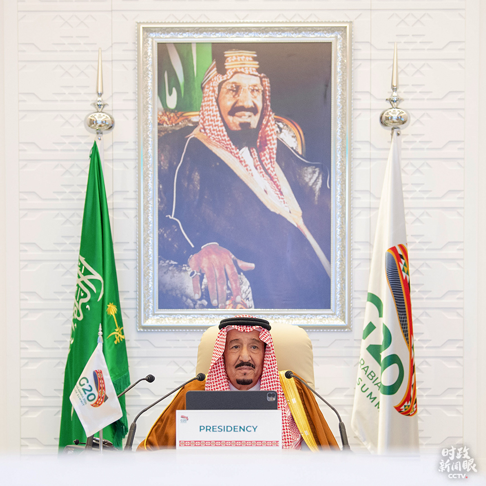 △沙特國(guó)王薩勒曼主持G20領(lǐng)導(dǎo)人第15次峰會(huì)第一階段會(huì)議。(來源于G20官方社交媒體)
