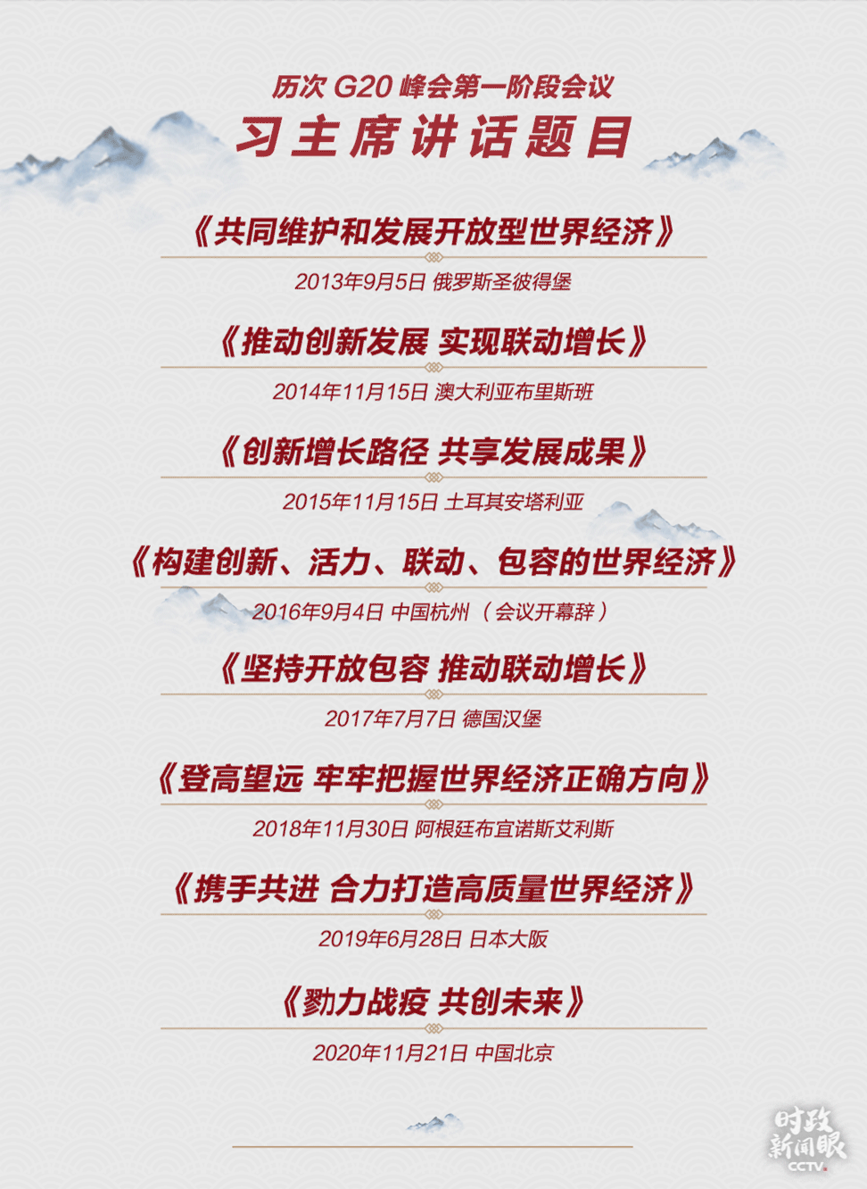 11月21日晚,連續(xù)第八年出席G20峰會(huì)的習(xí)主席在峰會(huì)第一階段會(huì)議上發(fā)表題為《勠力戰(zhàn)疫 共創(chuàng)未來》的講話,既提出抗疫情、穩(wěn)經(jīng)濟(jì)、保民生的路線圖,也呼吁G20在全球治理方面發(fā)揮更大引領(lǐng)作用。
