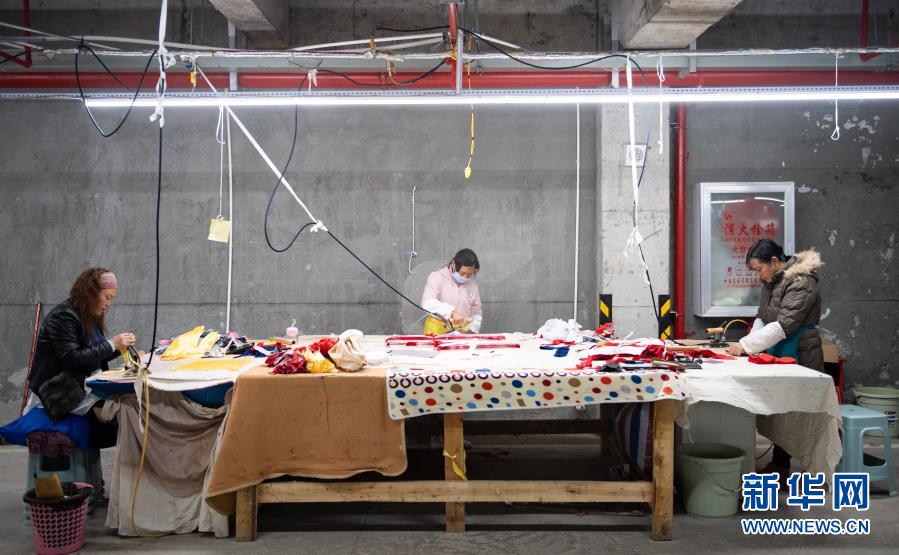 云南省鎮(zhèn)雄縣魯家院子易地扶貧搬遷安置點的居民在制衣扶貧車間內(nèi)工作(11月13日攝)。新華社記者 王冠森 攝