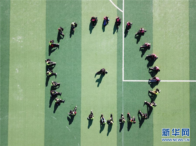 12月1日,在灤平縣第五小學(xué),棍網(wǎng)球隊(duì)員在進(jìn)行訓(xùn)練(無人機(jī)照片)。新華社發(fā)(王立群 攝)