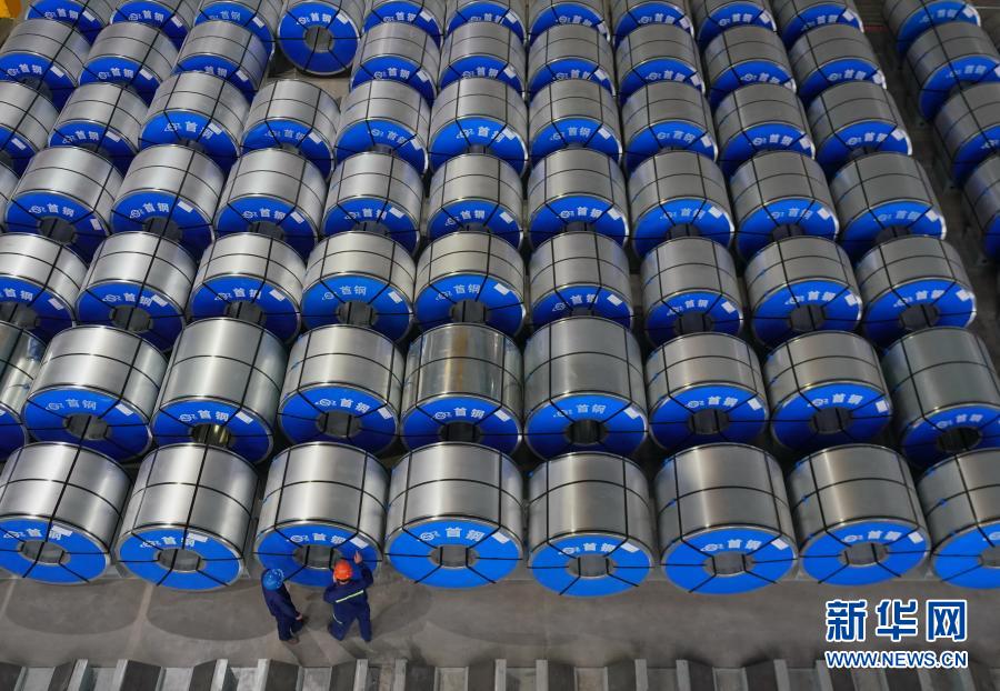 5月22日,工人在河北省遷安市首鋼遷鋼高端汽車板生產車間成品區(qū)工作。新華社記者 楊世堯 攝