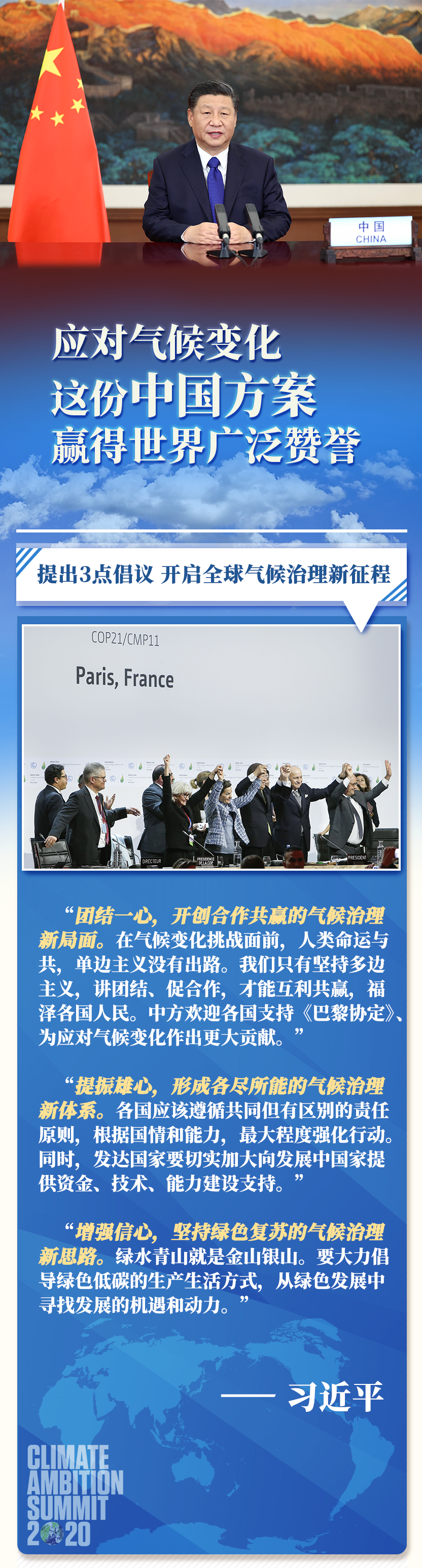 12月12日,習近平主席在氣候雄心峰會上通過視頻發(fā)表題為《繼往開來,開啟全球應對氣候變化新征程》的重要講話,闡釋應對氣候變化的中國主張,宣布中國國家自主貢獻最新舉措。