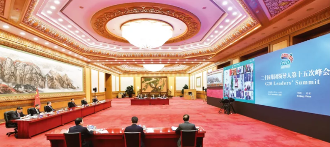 △2020年11月,習(xí)近平以視頻方式出席二十國集團(tuán)領(lǐng)導(dǎo)人第十五次峰會第二階段會議,重點(diǎn)闡述關(guān)于可持續(xù)發(fā)展問題的看法。