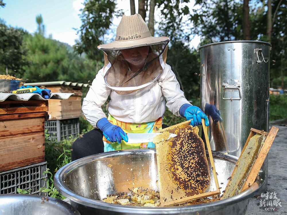 △11月23日,貴州宣布最后9個(gè)深度貧困縣退出貧困縣序列,標(biāo)志著我國新時(shí)代脫貧攻堅(jiān)目標(biāo)任務(wù)如期完成。這是貴州9個(gè)深度貧困縣之一的紫云縣村民發(fā)展“林下蜂”產(chǎn)業(yè),收割蜂蜜。