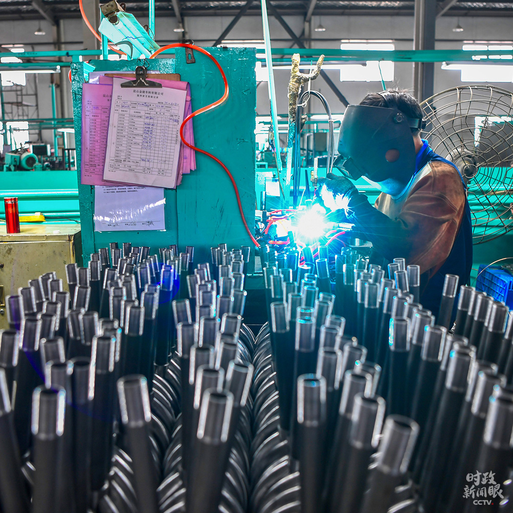 △江蘇海安某企業(yè)員工正加緊生產(chǎn)自行車零部件