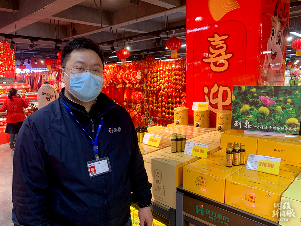 為了滿足消費(fèi)者就地過年的需求,超市主要增加了本地的特色產(chǎn)品。店長黃東告訴《時(shí)政新聞眼》,天麻、靈芝、杜仲組成的“貴州三寶”是這些天的熱銷商品。黃東是吉林人,他說自己也積極響應(yīng)號(hào)召,今年留在貴州過年。