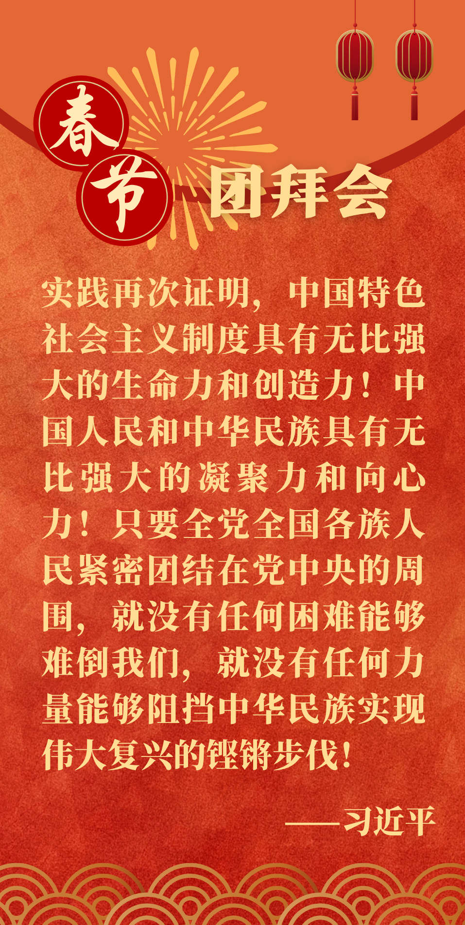 2月10日上午,中共中央、國(guó)務(wù)院在人民大會(huì)堂舉行2021年春節(jié)團(tuán)拜會(huì)。中共中央總書記、國(guó)家主席、中央軍委主席習(xí)近平發(fā)表講話,代表黨中央、國(guó)務(wù)院,向全國(guó)各族人民,向香港特別行政區(qū)同胞、澳門特別行政區(qū)同胞、臺(tái)灣同胞和海外僑胞拜年。