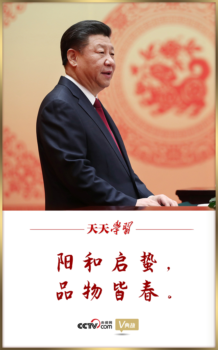 2018年,祖國(guó)大地春來(lái)早,立春剛過(guò),春節(jié)將臨。在春節(jié)團(tuán)拜會(huì)上,習(xí)近平總書(shū)記在講話開(kāi)場(chǎng)即引用“陽(yáng)和啟蟄,品物皆春”這一名句,描繪了祖國(guó)大地春風(fēng)拂面、萬(wàn)象更新的景象。