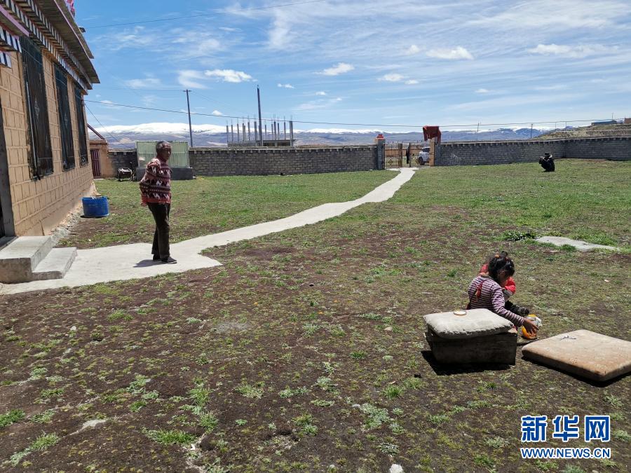 四川省甘孜藏族自治州理塘縣奔戈鄉(xiāng)卡灰村村民洛登(左一)在家門(mén)口(2020年5月30日攝)。新華社記者 康錦謙 攝