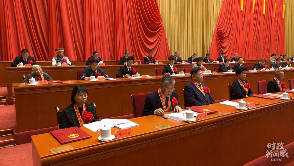 △當(dāng)天受到表彰的代表均佩戴紅花。(總臺(tái)央視記者楊波拍攝)