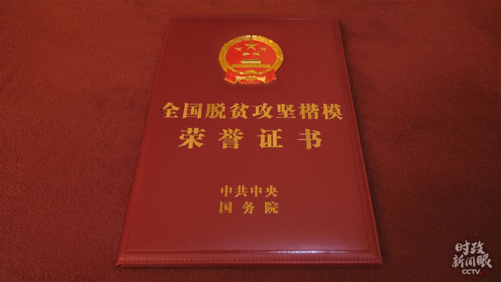 △全國(guó)脫貧攻堅(jiān)先進(jìn)個(gè)人獎(jiǎng)?wù)屡c證書(總臺(tái)央視記者彭漢明拍攝)
