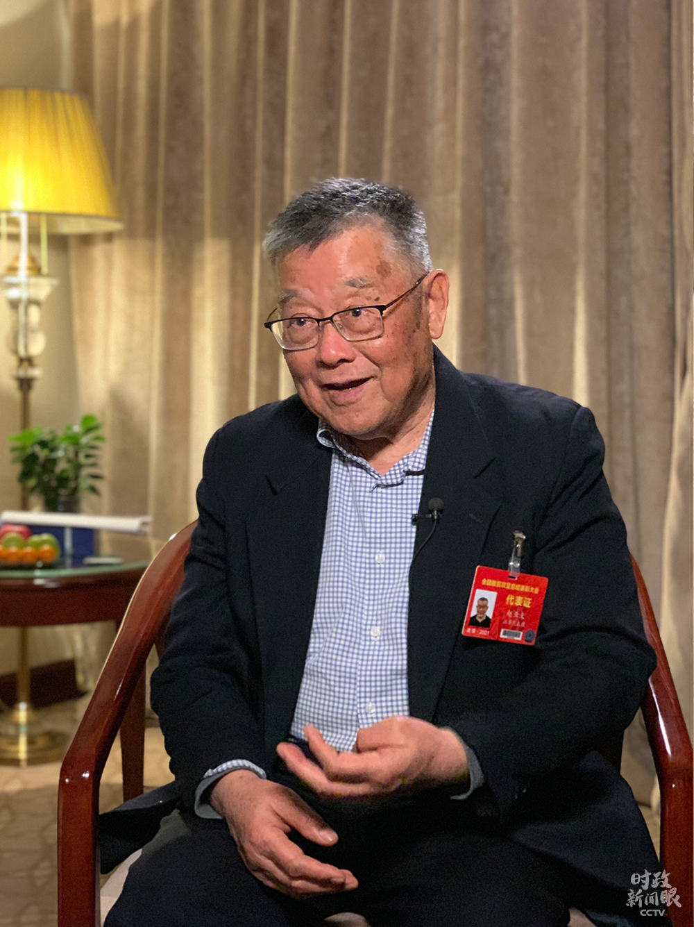 △李玉院士特意佩戴了一條有“食用菌”設(shè)計(jì)圖樣的領(lǐng)帶。(總臺(tái)央視記者郭鴻、盧心雨拍攝)