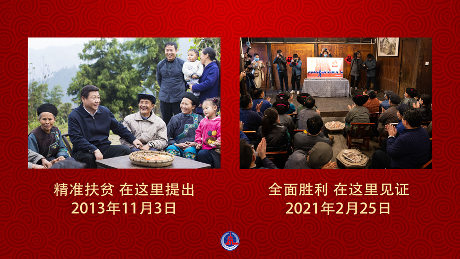 左圖:2013年11月3日下午,習近平總書記在湖南省湘西土家族苗族自治州花垣縣排碧鄉(xiāng)十八洞村同村干部和村民座談,在此首次提出“精準扶貧”(新華社記者 王曄 攝)。