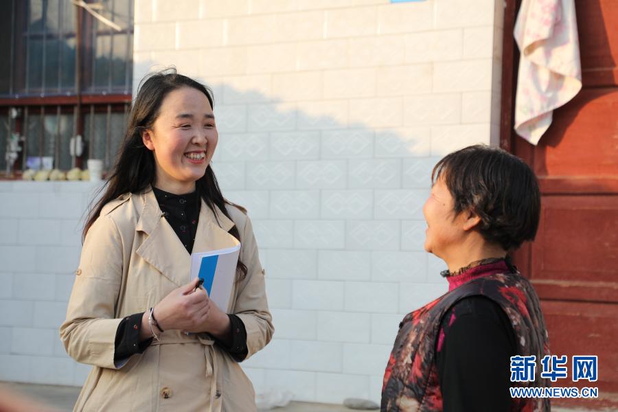 2月23日,在甘肅省隴南市徽縣水陽(yáng)鎮(zhèn)石灘村,全國(guó)人大代表梁倩娟(左)同村民茍明交流。 新華社記者 張智敏 攝
