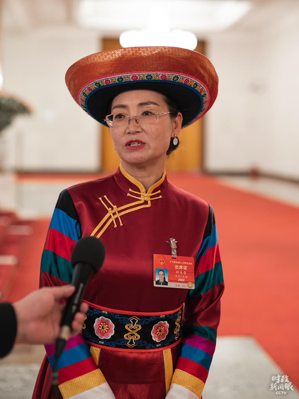 △沙沨代表在當(dāng)天的發(fā)言中,建議將基層治理以法治化手段實(shí)現(xiàn),一站式服務(wù)讓百姓少跑路。(總臺(tái)央視記者張曉鵬拍攝)