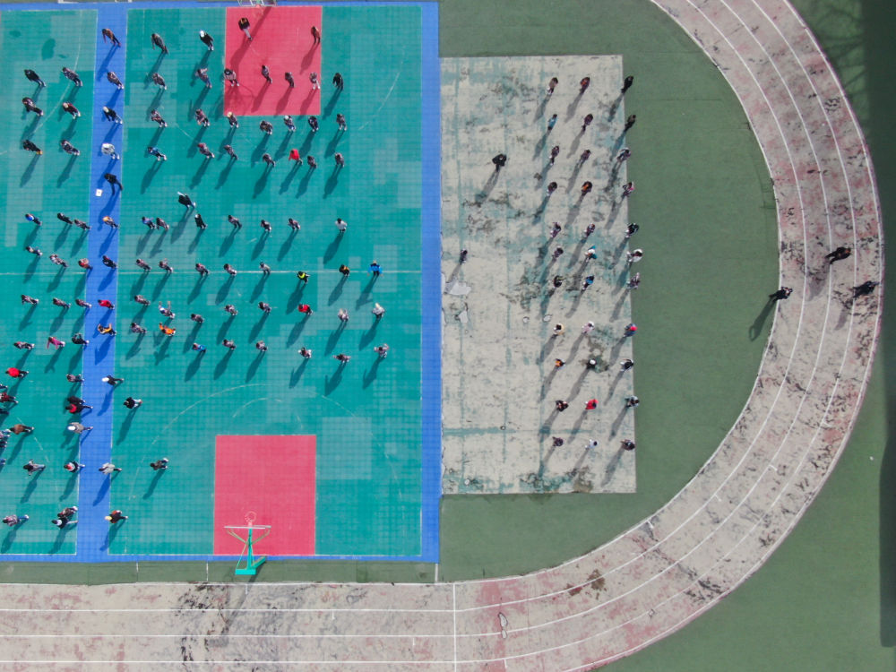 ↑ 在青海省玉樹藏族自治州八一孤兒學(xué)校,學(xué)生們?cè)谶M(jìn)行課間活動(dòng)(2020年4月3日攝)。 新華社記者 張龍 攝