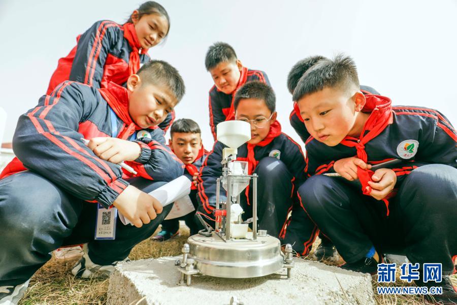 3月22日,河北省柏鄉(xiāng)縣南關(guān)小學(xué)的學(xué)生在學(xué)習(xí)氣象知識(shí)。新華社發(fā)(李雪其 攝)