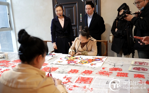 文物館邀請的民間藝術(shù)家現(xiàn)場剪紙、繪畫 (中國臺灣網(wǎng) 李杰 攝)