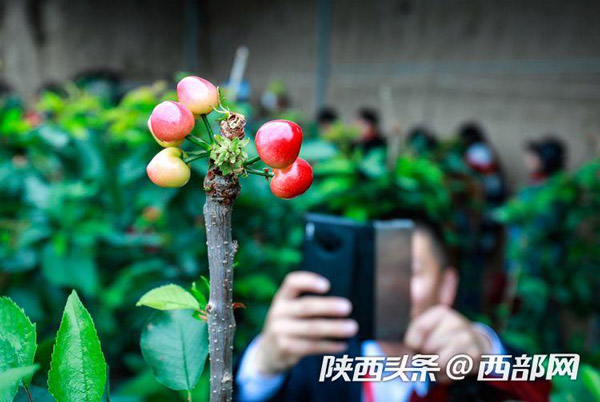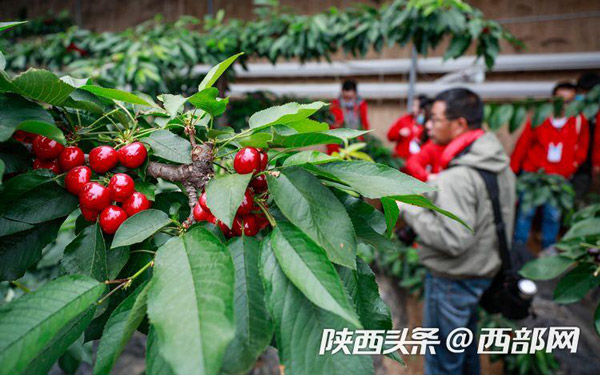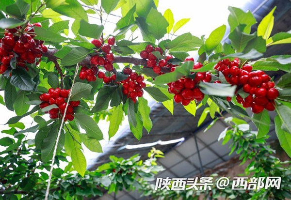 在櫻桃棚內(nèi),紅色的櫻桃一簇一簇簇?fù)碓跇渖?,在綠油油的樹葉間顯得嬌艷欲滴。路寶告訴記者,子長的櫻桃可以趕在其他產(chǎn)地的櫻桃未上市前售賣,因此市場(chǎng)行情好,加上保存期長,適合現(xiàn)代物流的發(fā)展,從而產(chǎn)生了比較好的收益。“我們這個(gè)櫻桃可以在其他櫻桃還沒有上市的時(shí)候,借助現(xiàn)代物流賣到全國各地,甚至可以賣到櫻桃的主產(chǎn)區(qū)去。”