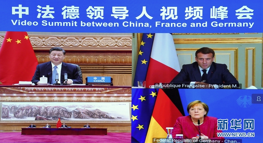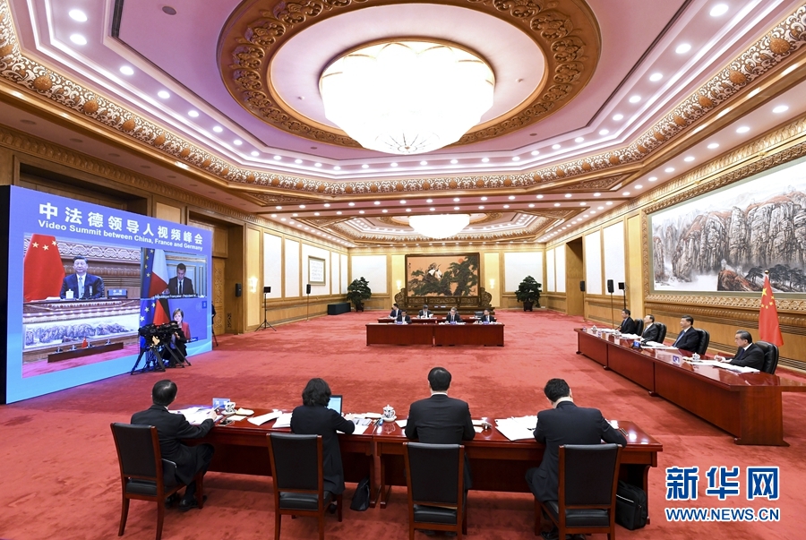 新華社北京4月16日電 4月16日下午,國家主席習(xí)近平在北京同法國總統(tǒng)馬克龍、德國總理默克爾舉行中法德領(lǐng)導(dǎo)人視頻峰會。三國領(lǐng)導(dǎo)人就合作應(yīng)對氣候變化、中歐關(guān)系、抗疫合作以及重大國際和地區(qū)問題深入交換意見。