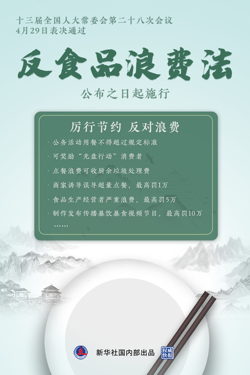 4月29日,十三屆全國人大常委會(huì)第二十八次會(huì)議表決通過反食品浪費(fèi)法,防止食品浪費(fèi)從此有法可依。
