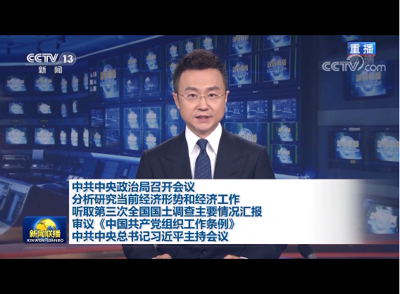 央視網(wǎng)消息(新聞聯(lián)播):中共中央政治局4月30日召開會議,分析研究當(dāng)前經(jīng)濟(jì)形勢和經(jīng)濟(jì)工作;聽取第三次全國國土調(diào)查主要情況匯報;審議《中國共產(chǎn)黨組織工作條例》。中共中央總書記習(xí)近平主持會議。