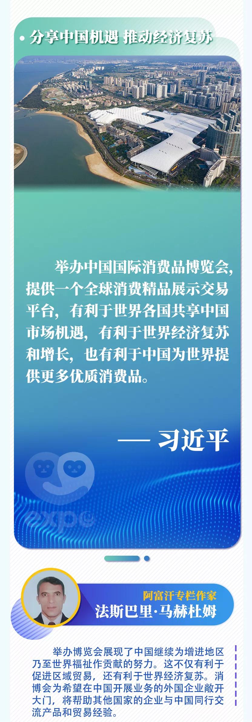 新華社北京5月7日電 首屆中國國際消費(fèi)品博覽會6日在海南省海口市開幕,國家主席習(xí)近平致賀信。多國人士表示,舉辦國際消費(fèi)品博覽會不僅是中國同各國共享發(fā)展機(jī)遇的重大舉措,還將對各國加強(qiáng)合作、實(shí)現(xiàn)互利共贏產(chǎn)生重要影響。