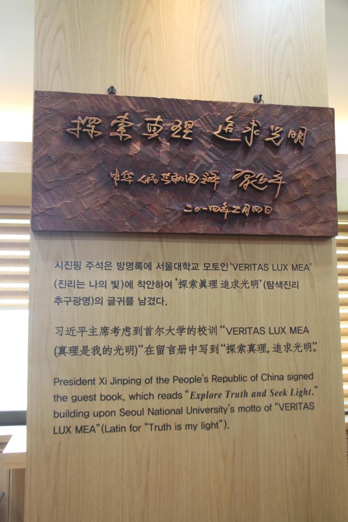 這是習近平主席給首爾大學的親筆題詞。