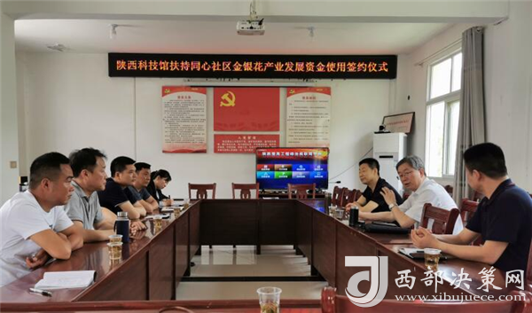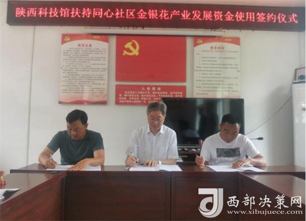 實(shí)地調(diào)研結(jié)束,在中廠鎮(zhèn)同心社區(qū)進(jìn)行了陜西科技館扶持同心社區(qū)金銀花產(chǎn)業(yè)發(fā)展資金使用框架協(xié)議簽約儀式。陜西科學(xué)技術(shù)館館長王曉東、同心社區(qū)書記王順明、白河縣沐之然農(nóng)業(yè)綜合開發(fā)有限公司監(jiān)事王利群共同簽署了銀花產(chǎn)業(yè)發(fā)展資金使用框架協(xié)議,標(biāo)志著以金銀花產(chǎn)業(yè)發(fā)展為龍頭鄉(xiāng)村振興工作進(jìn)入快速發(fā)展階段。