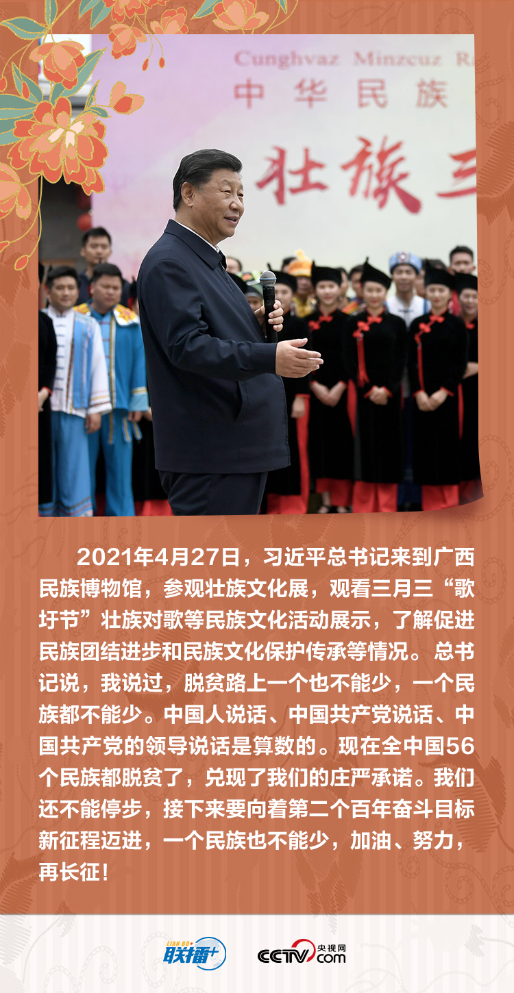 黨的十八大以來,總書記多次深入少數(shù)民族地區(qū)考察,足跡遍及祖國北疆、西南邊陲、雪域高原、天山南北,他頻頻強調(diào)“一個民族都不能少”這個莊嚴承諾。