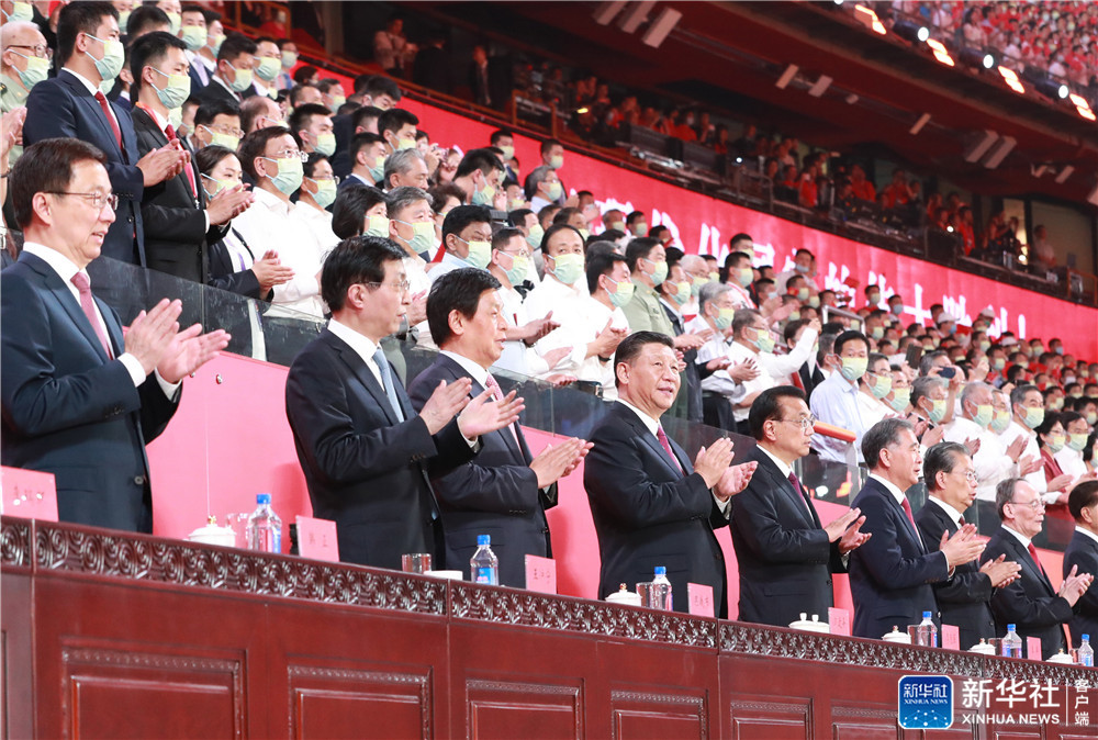 6月28日晚,慶祝中國共產(chǎn)黨成立100周年文藝演出《偉大征程》在國家體育場盛大舉行。習(xí)近平、李克強、栗戰(zhàn)書、汪洋、王滬寧、趙樂際、韓正、王岐山等黨和國家領(lǐng)導(dǎo)人,同約2萬名觀眾一起觀看演出。新華社記者 龐興雷 攝