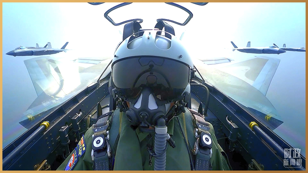△15架殲-20飛機組成3個梯隊,飛過天安門廣場。