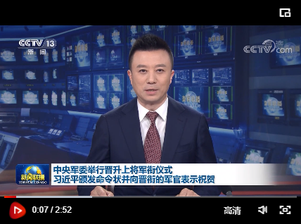 下午5時(shí)15分許,晉銜儀式在莊嚴(yán)的國(guó)歌聲中開始。中央軍委副主席許其亮宣讀了中央軍委主席習(xí)近平簽署的晉升上將軍銜命令。中央軍委副主席張又俠主持晉銜儀式。